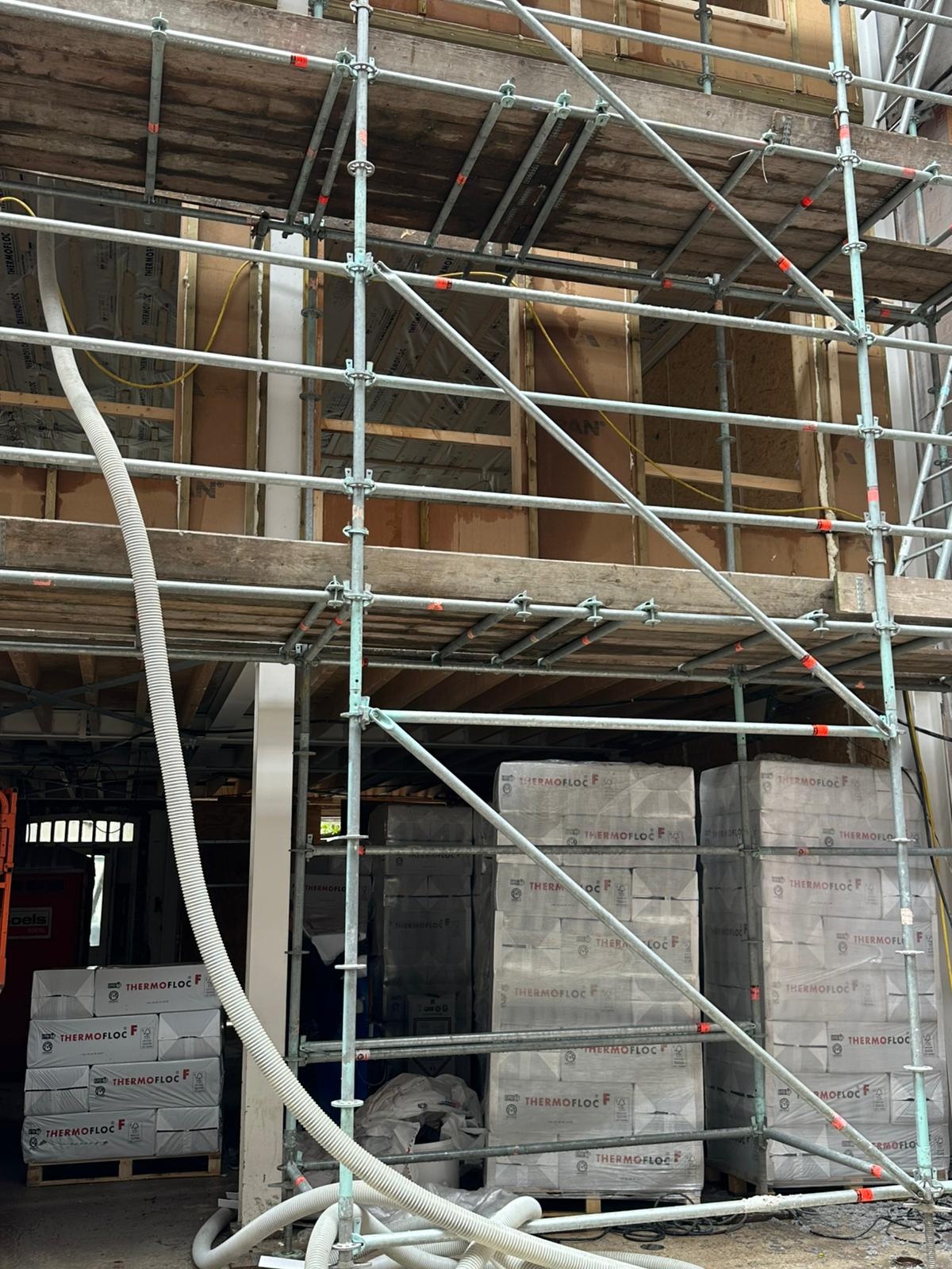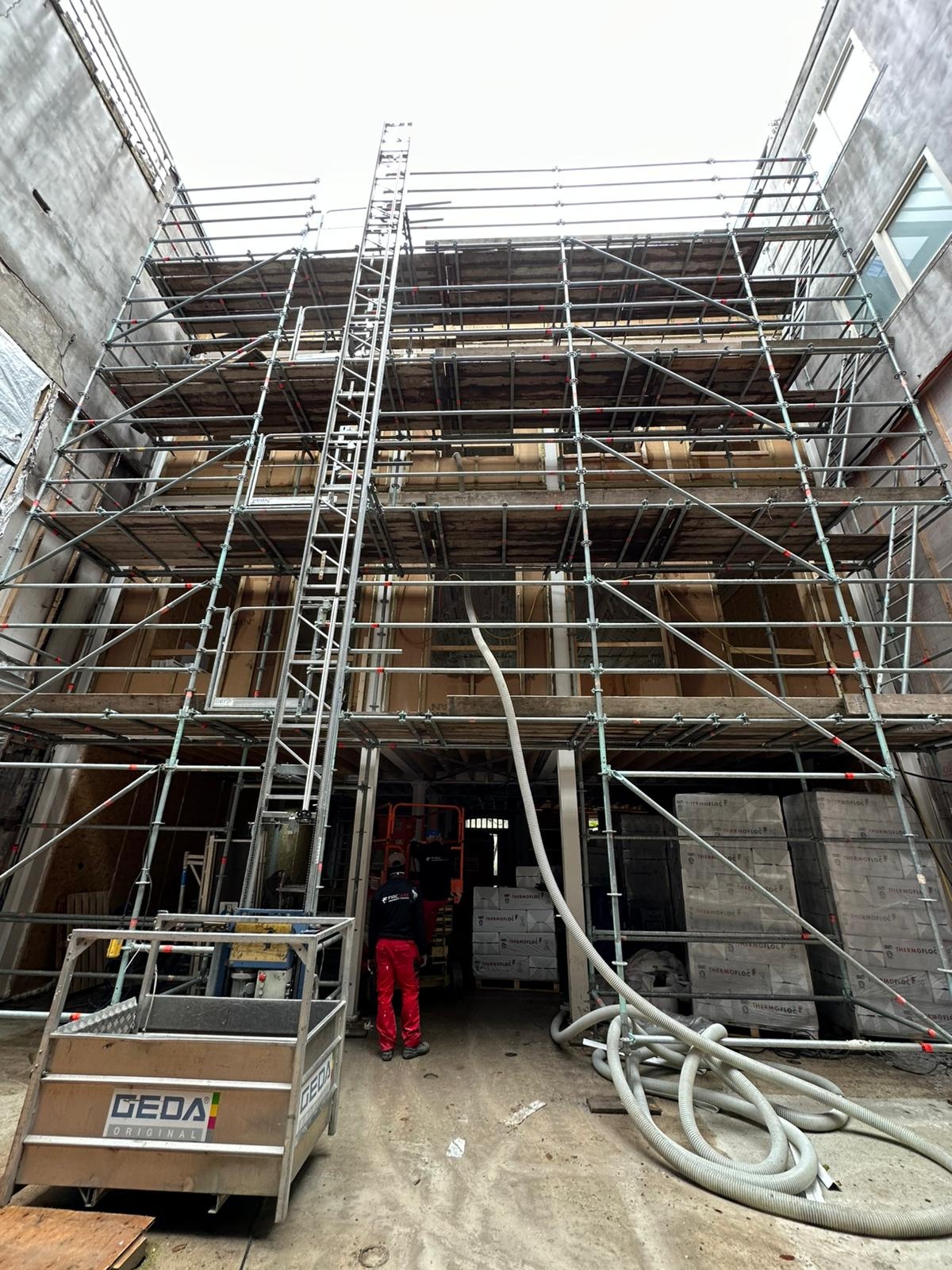 Einde van de maand oktober blazen we de laatste elementen in met Thermofloc cellulose en wordt het project afgerond.
