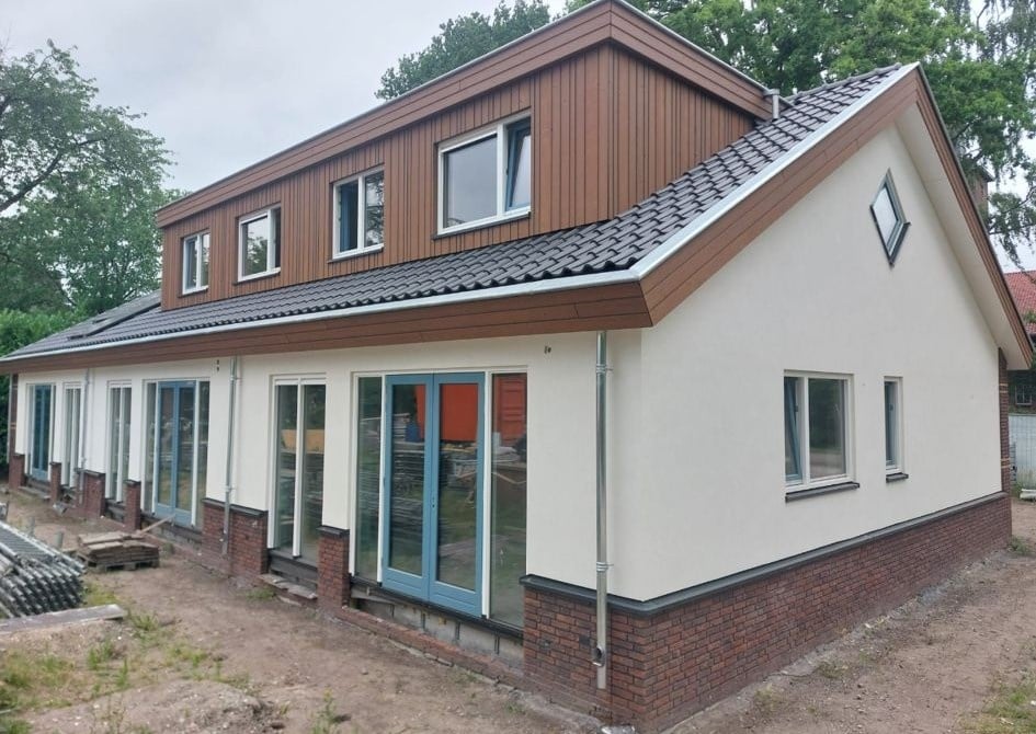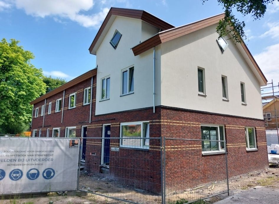 Voor dit project hebben zij de elementen voor deze rijtjeswoningen in de fabriek gemaakt én ingeblazen met Thermofloc cellulose.